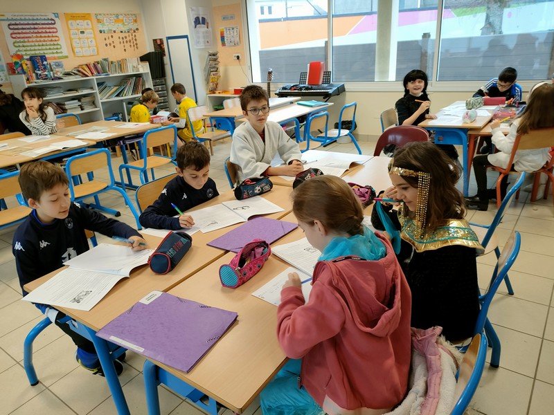 Mais le soleil était quand même au rendez-vous dans la joie et les sourires des enfants : déguisés, ils ont fait une grande farandole dans les classes, accompagnés par la fanfare Nouvel’Air de St Denis-Boulogne.