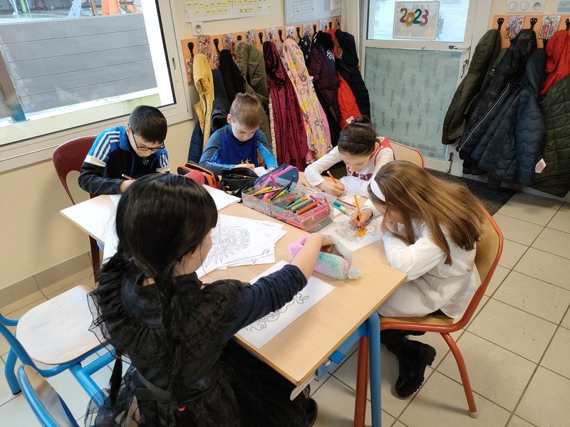 Mais le soleil était quand même au rendez-vous dans la joie et les sourires des enfants : déguisés, ils ont fait une grande farandole dans les classes, accompagnés par la fanfare Nouvel’Air de St Denis-Boulogne.