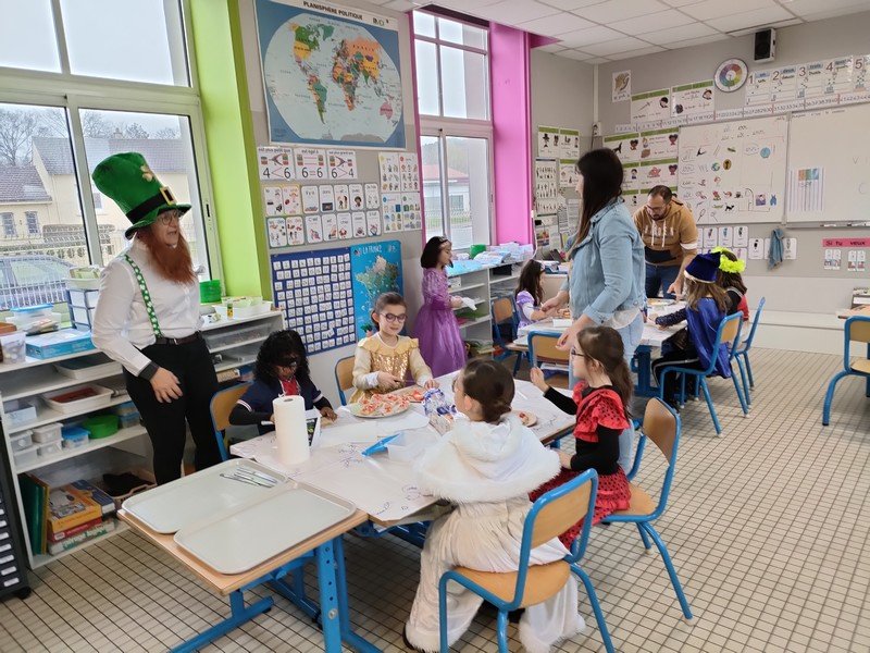 Mais le soleil était quand même au rendez-vous dans la joie et les sourires des enfants : déguisés, ils ont fait une grande farandole dans les classes, accompagnés par la fanfare Nouvel’Air de St Denis-Boulogne.