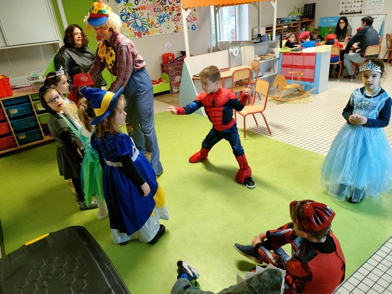 Mais le soleil était quand même au rendez-vous dans la joie et les sourires des enfants : déguisés, ils ont fait une grande farandole dans les classes, accompagnés par la fanfare Nouvel’Air de St Denis-Boulogne.