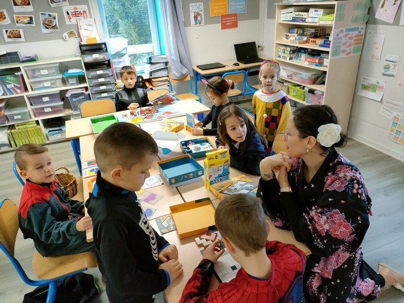 Mais le soleil était quand même au rendez-vous dans la joie et les sourires des enfants : déguisés, ils ont fait une grande farandole dans les classes, accompagnés par la fanfare Nouvel’Air de St Denis-Boulogne.