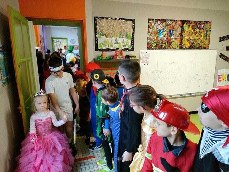 Mais le soleil était quand même au rendez-vous dans la joie et les sourires des enfants : déguisés, ils ont fait une grande farandole dans les classes, accompagnés par la fanfare Nouvel’Air de St Denis-Boulogne.
