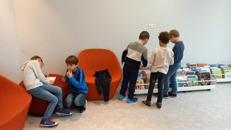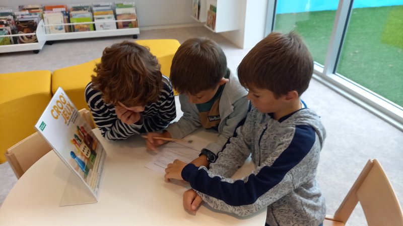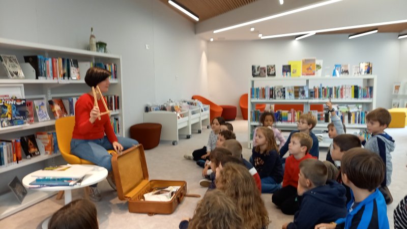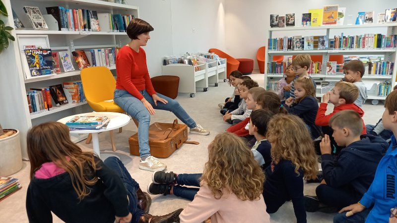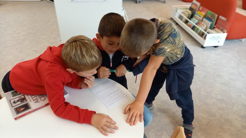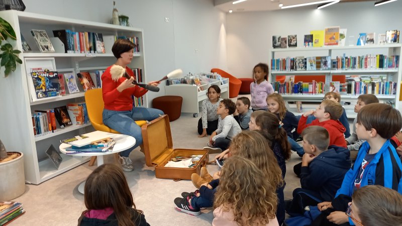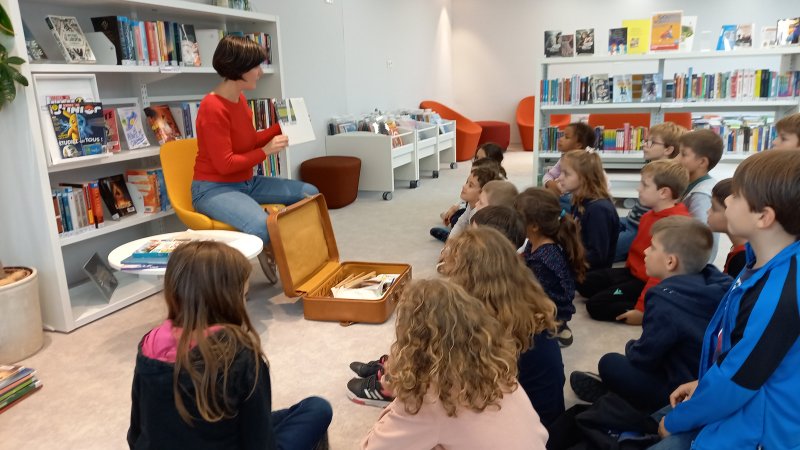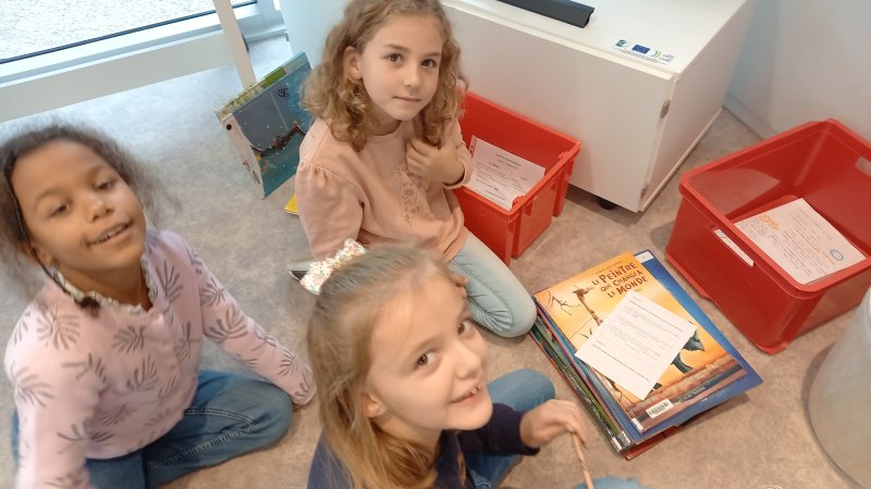 . Le lundi 17 octobre, nous sommes allés à la médiathèque. Par groupe de 2 ou 3, nous avons dû résoudre une petite enquête liée au fonctionnement général de la médiathèque. Ensuite, nous avions à rechercher un documentaire, un livre en lien avec l’art et nous devions répondre à des questions. Nous avons ensuite découvert grâce à la valise de Cécile des objets et des images sur l’art. Nous ne devons pas oublier la formule magique pour ouvrir la valise !