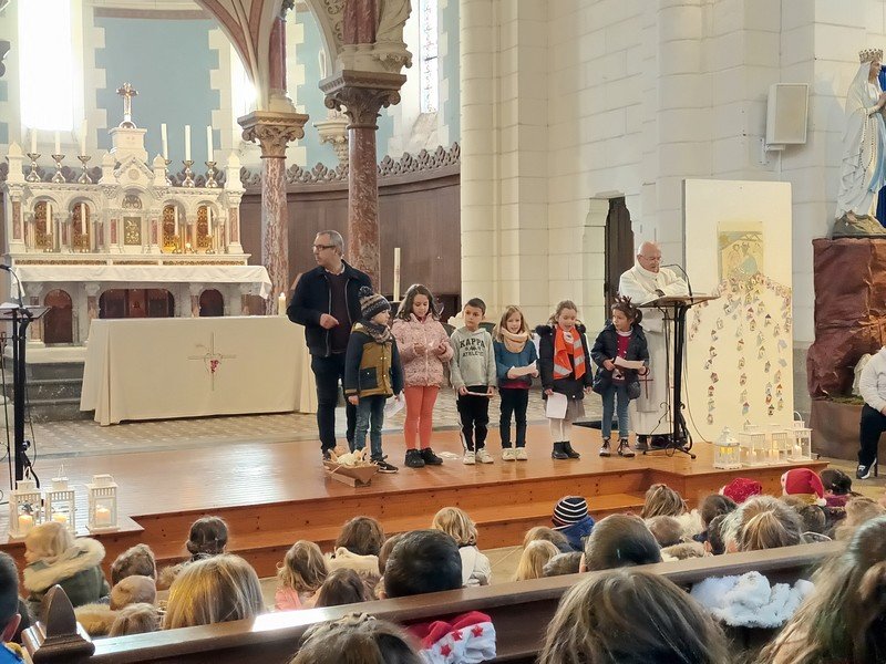 Nous avons pu vivre cette année une célébration de Noël collectivement : tous les élèves sont allés à l’église pour vivre ce temps-fort et des parents, grands-parents étaient présents pour les accompagner !