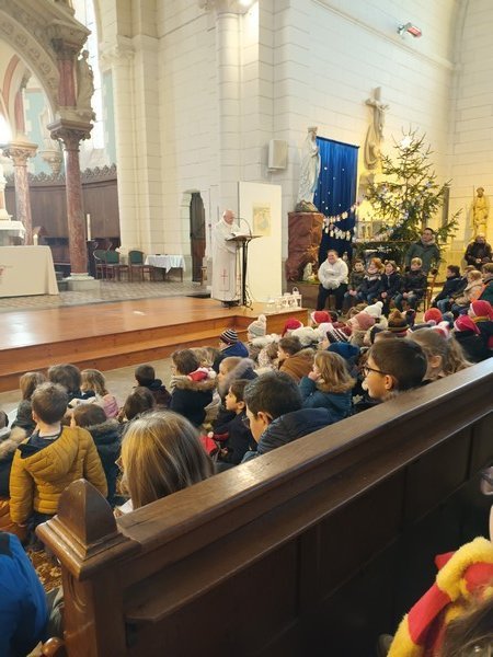 Nous avons pu vivre cette année une célébration de Noël collectivement : tous les élèves sont allés à l’église pour vivre ce temps-fort et des parents, grands-parents étaient présents pour les accompagner !