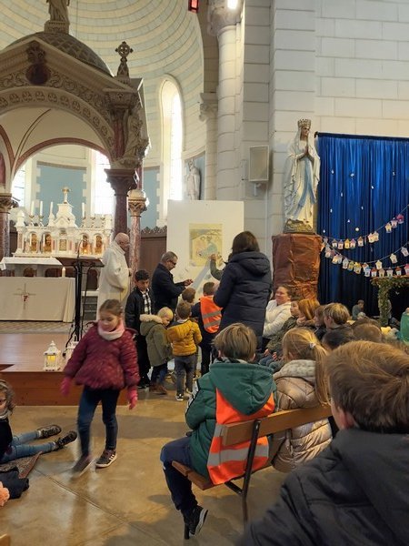 Nous avons pu vivre cette année une célébration de Noël collectivement : tous les élèves sont allés à l’église pour vivre ce temps-fort et des parents, grands-parents étaient présents pour les accompagner !