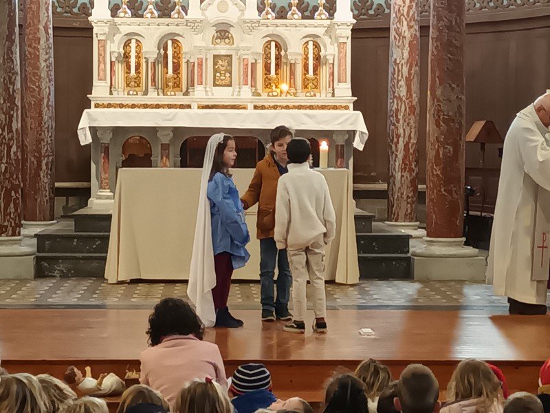 Pendant la cérémonie, des élèves ont également raconté et mimé l’évangile racontant la naissance de Jésus à Bethléem.