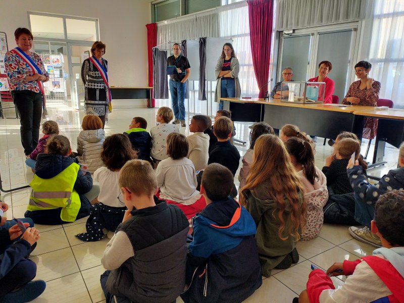 Suite au meeting, les CM1 se sont rendus à la mairie pour aller voter.