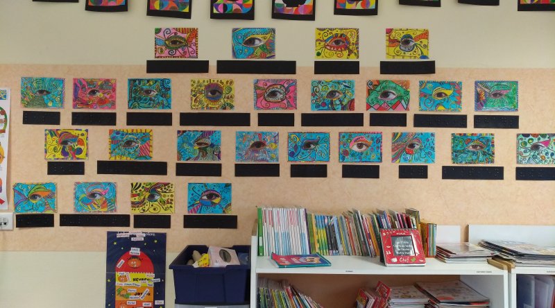 En art visuel, avec Roselyne, ils ont créé des œuvres en lien avec le braille pour compléter la découverte du thème du handicap.