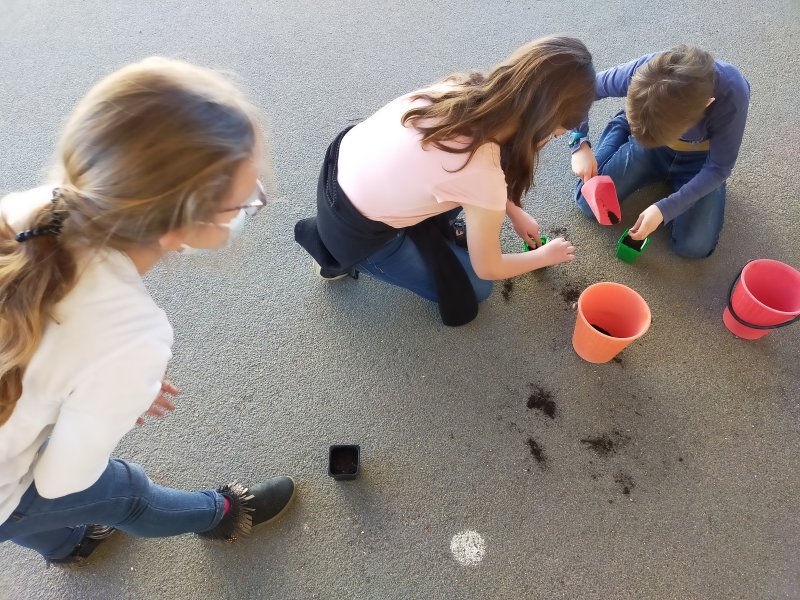 Pour les sciences, les CM1 ont préparé des expériences pour rechercher les besoins essentiels d’une graine pour germer et d’une plante pour pousser. La période étant écourtée, ils poursuivent leurs expériences chez eux.