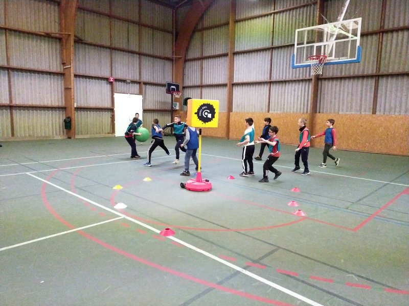 En EPS, la classe a pu jouer des matchs de Poull ball sur le grand terrain.