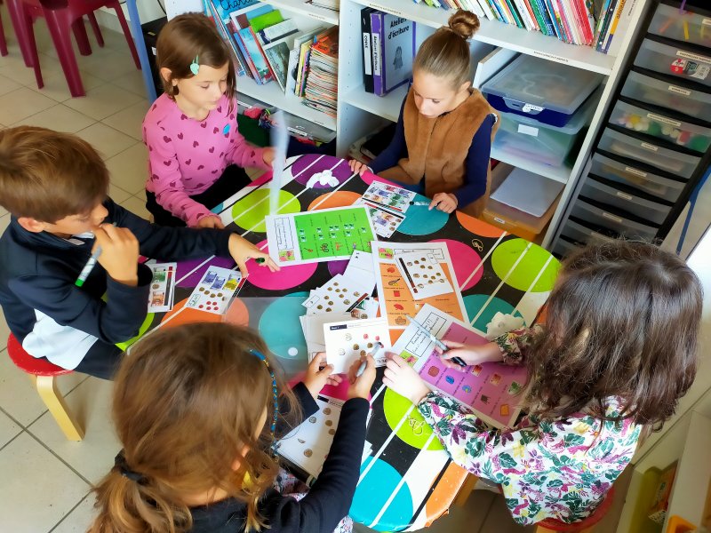Les enfants découvrent de nouveaux ateliers : la monnaie, les types de phrases…