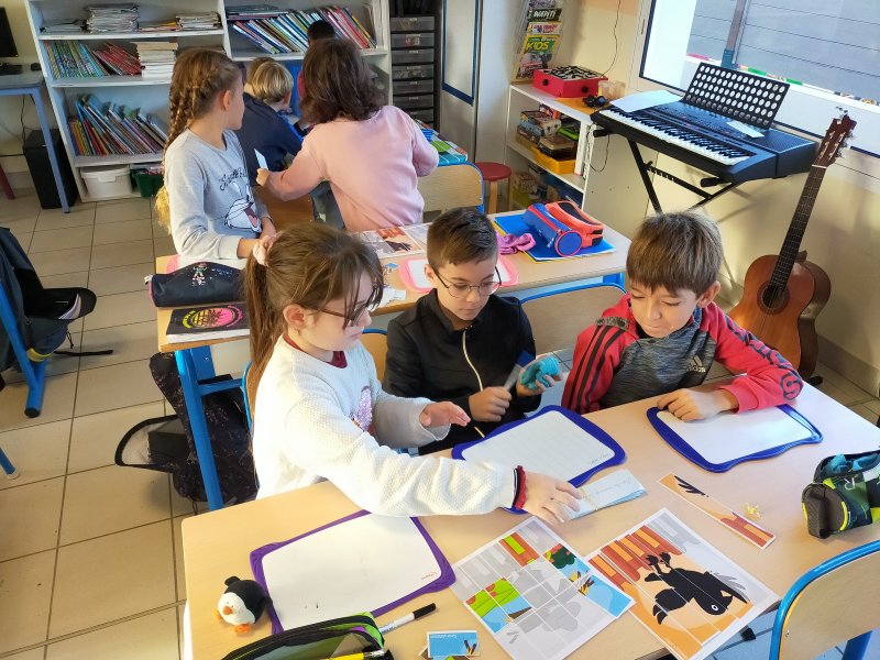 Les enfants découvrent de nouveaux ateliers : la monnaie, les types de phrases…