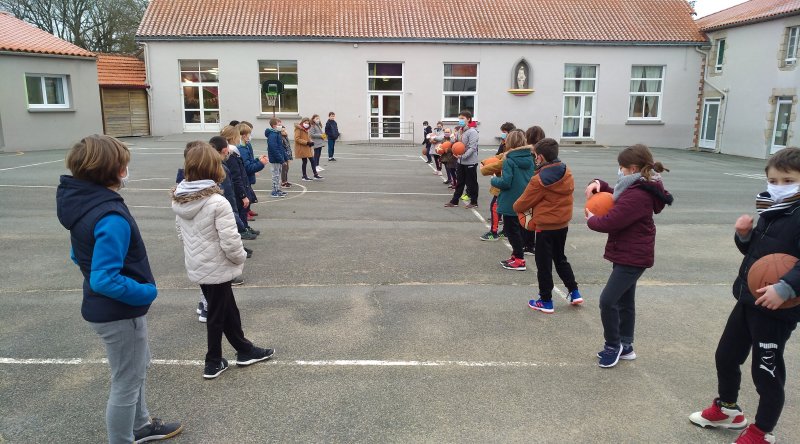 Durant ce mois, nous avons également la chance d’avoir des séances de basket avec madame Berthelot. Nous avons commencé les séances en salle et nous les poursuivons désormais sur la cour.