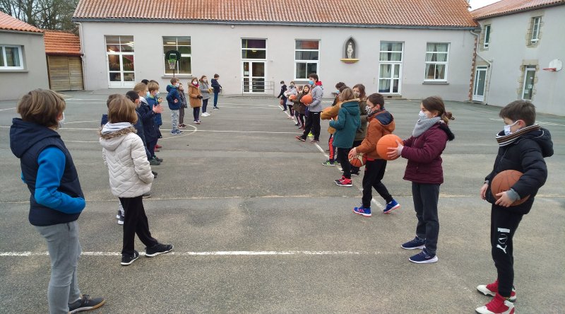 Durant ce mois, nous avons également la chance d’avoir des séances de basket avec madame Berthelot. Nous avons commencé les séances en salle et nous les poursuivons désormais sur la cour.