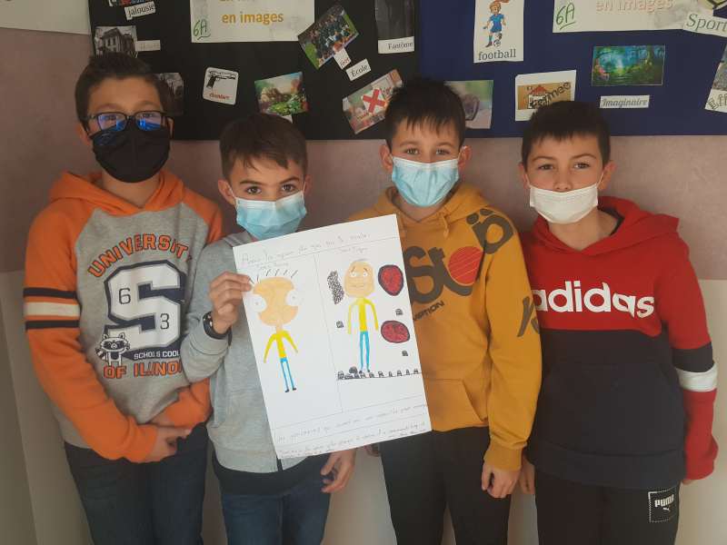 Pour clore notre séquence de lexique sur le sens propre et le sens figuré, les CM2 ont préparé des affiches avec des expressions françaises illustrées. Ils ont travaillé par groupe de 4 ou de 5 et ont cherché comment illustrer une expression, la définir puis l’employer dans une phrase exemple.