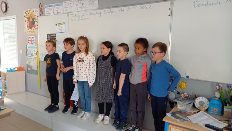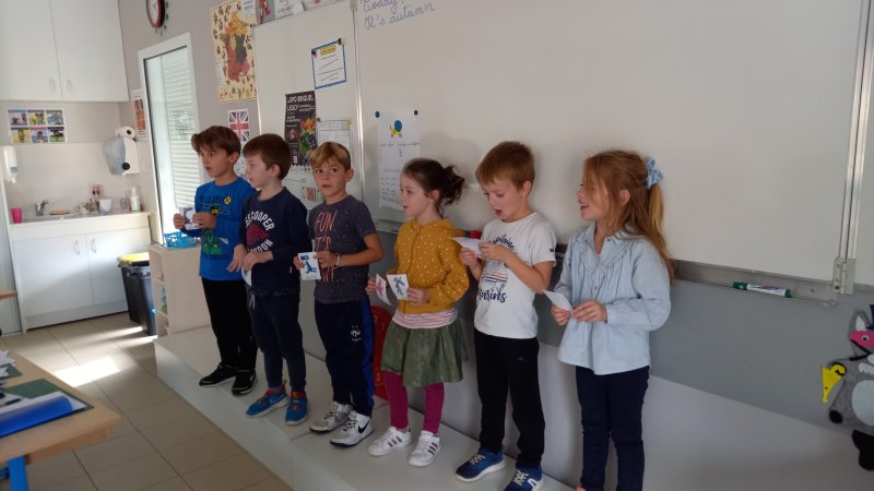 . Le vendredi 21 octobre, les classes de cycle 2 se sont retrouvées par groupe pour présenter les albums de rentrée ainsi que les poésies apprises depuis le début de l’année. Après ce temps de partage, tous les enfants se sont rassemblés sur la cour pour interpréter le chant du temps fort ” Je veux apprendre”.