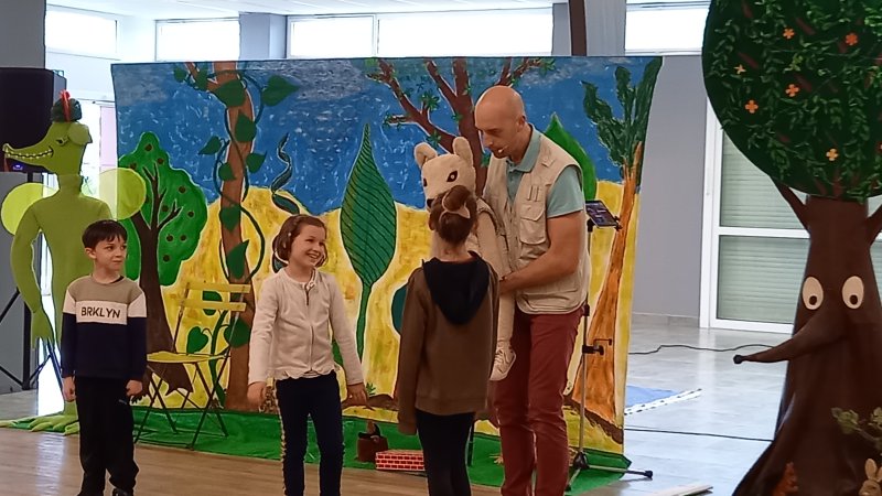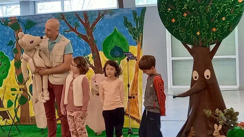 . Le mardi 5 avril, les 3 classes de cycle 2 ont assisté au spectacle ‘J’ai vu le loup” animé par Guillame Bourgouin de la compagnie “acteurs en herbe”. C’était un spectacle interactif, une marionnette “Taïlou” racontait différents contes avec le loup comme personnage principal et les enfants jouaient les scènes. Ce loup apprend à grandir, à affronter ses peurs, mais aussi à déjouer les pièges de la rue, les dangers en apprenant les règles de la sécurité routière.