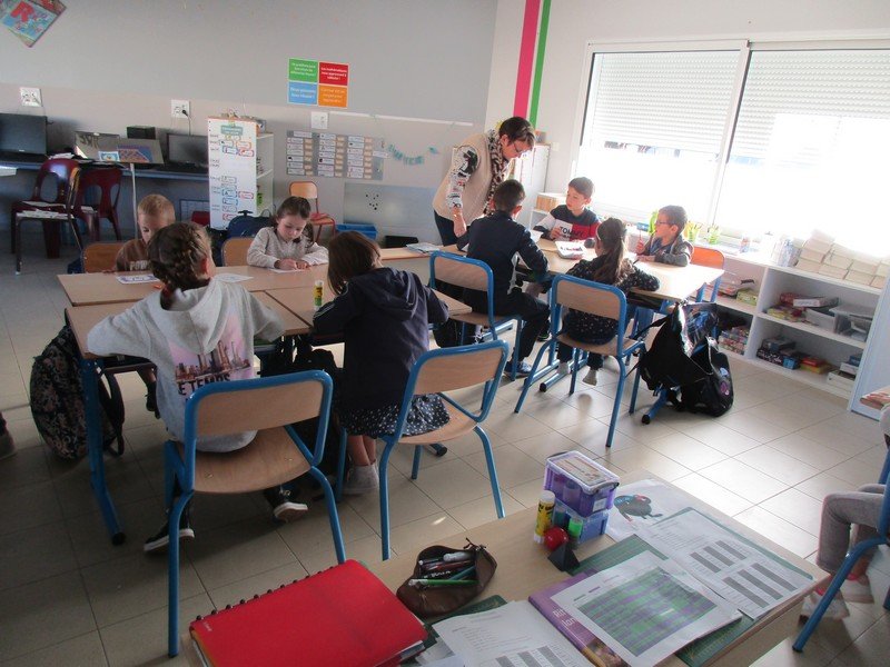 Ils étaient répartis en 6 équipes de la petite section au CM2, les “grands” aidant les plus jeunes pour vivre les 6 ateliers proposés par 6 marionnettes :