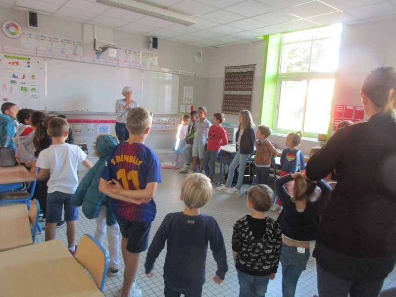 - Atelier chant avec le petit chaperon rouge : les élèves ont commencé à apprendre le chant “Je veux apprendre”, il servira de fil conducteur pendant l’année.
